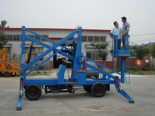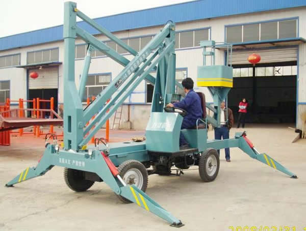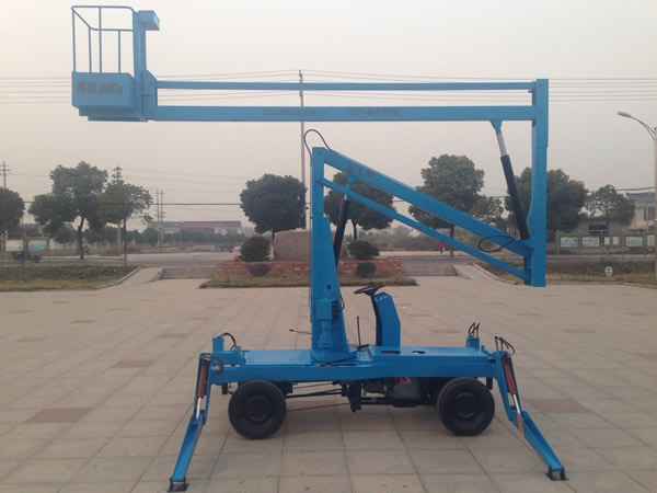 曲臂式升降平臺規(guī)格:外形尺寸:3900*2200*2900 (MM)臺面尺寸:700*600(MM)主結(jié)構(gòu):采用Q235鋼板(5 mm)對折焊接,旋轉(zhuǎn)360度。液壓支撐腿,驅(qū)動型式:自行式,啟動方式: 電啟動 發(fā)動機(jī)功率(HP): 12電源電壓(V):12 支腿型式: 液壓支撐 抗風(fēng)能力: ≤5級